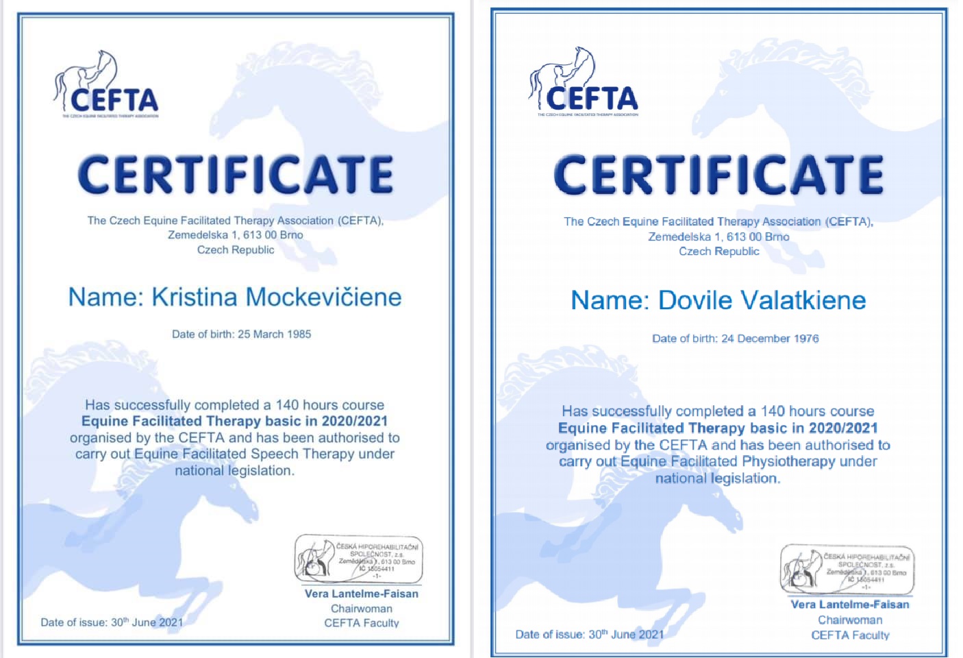 Sertifikuoti žirgų asistuojamos terapijos- hipoterapijos specialistai